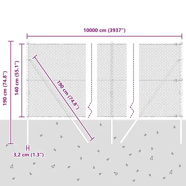 • Splošne dimenzije: 10000 x 3.2 x 140 cm (D x Š x V)