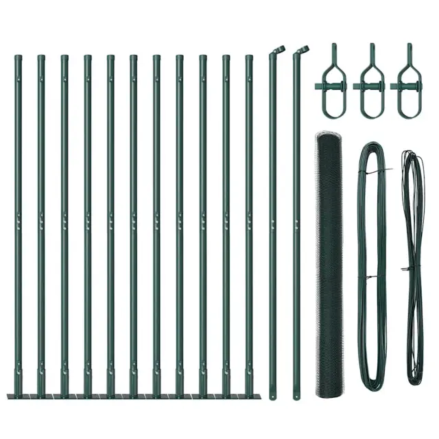 vidaXL Ogrodje s stebri Zelena 1.4 x 25 m Jeklo s PVC premazom