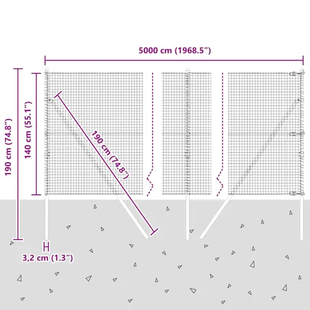 vidaXL Ogrodje s stebri Zelena 1.4 x 50 m Jeklo