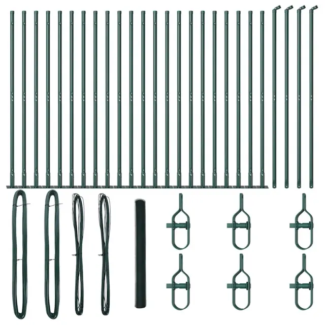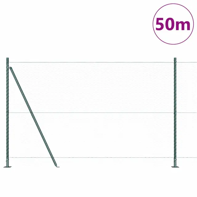 vidaXL Ogrodje s stebri Zelena 1.4 x 50 m Jeklo s PVC premazom