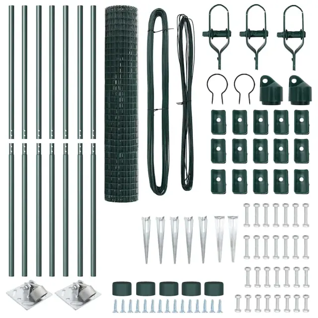vidaXL Ogrodje s stebri Zelena 1.5 x 10 m Jeklo