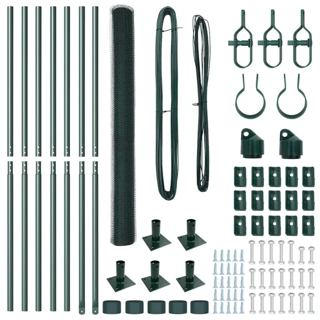 vidaXL Ogrodje s stebri Zelena 1.5 x 10 m Jeklo s PVC premazom