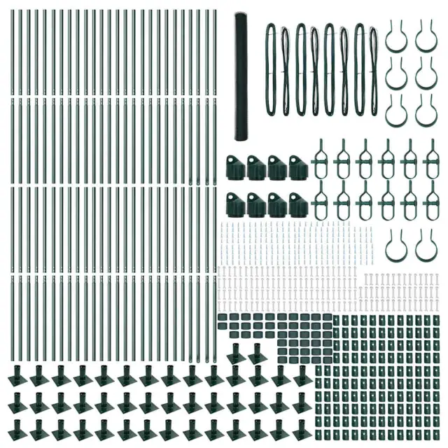 vidaXL Ogrodje s stebri Zelena 1.5 x 100 m Jeklo s PVC premazom