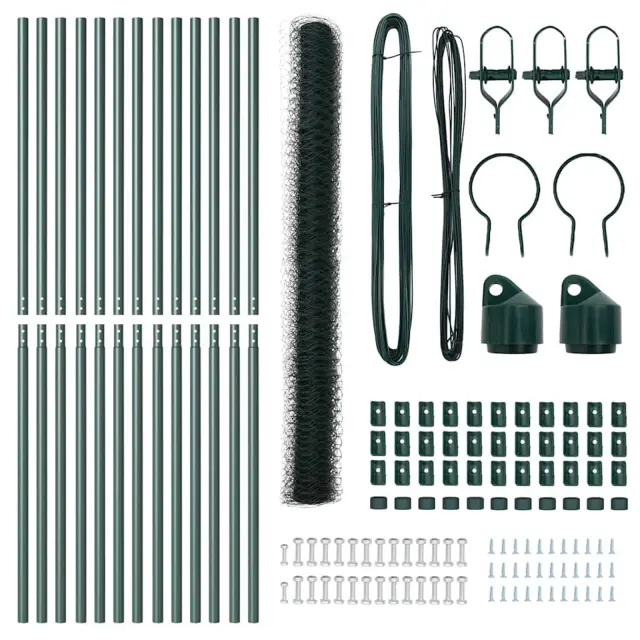 vidaXL Ogrodje s stebri Zelena 1.5 x 25 m Jeklo s PVC premazom