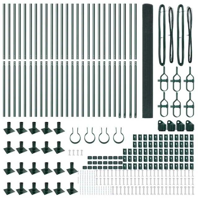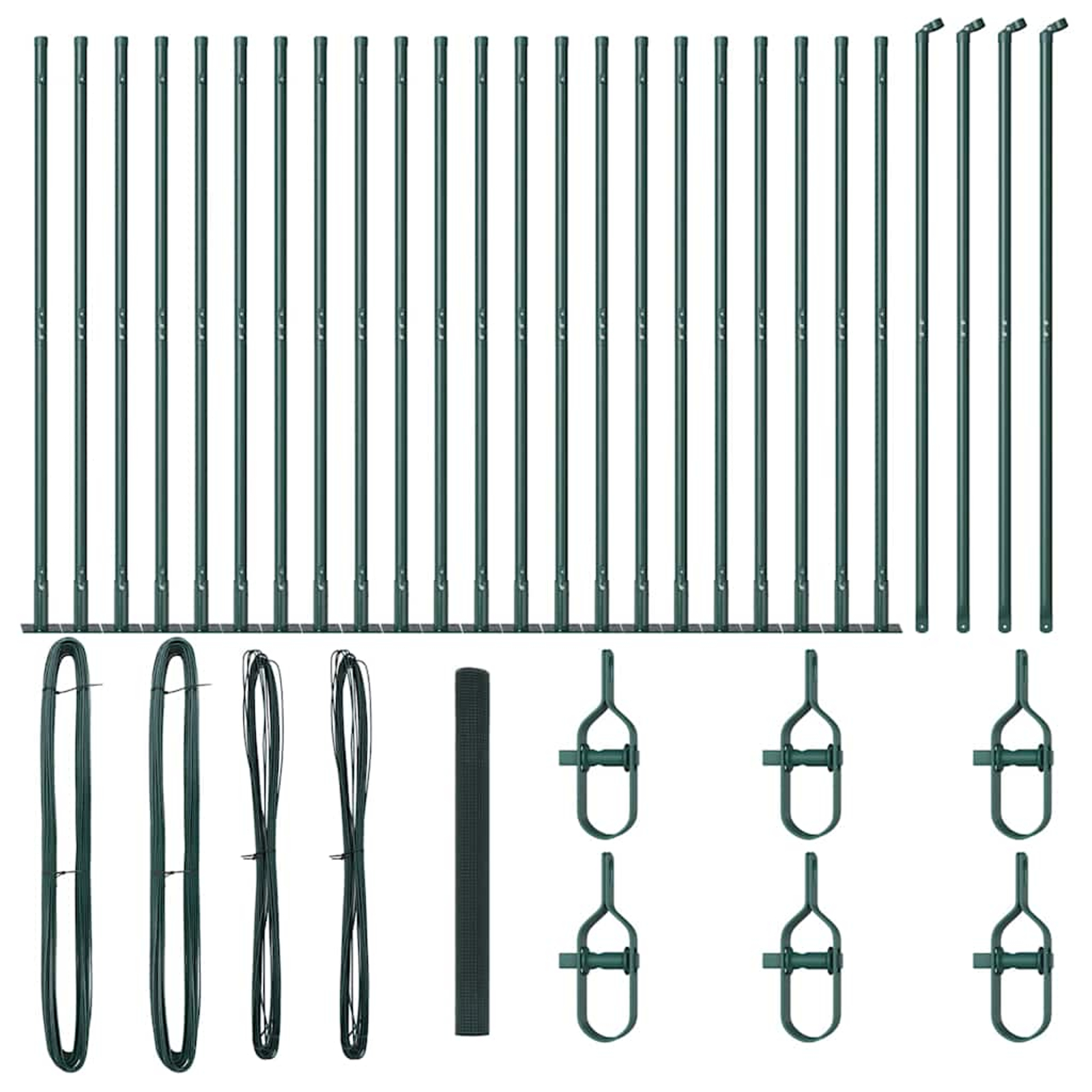 vidaXL Ogrodje s stebri Zelena 1.5 x 50 m Jeklo