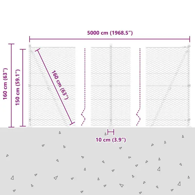 • Splošne dimenzije: 5000 x 3.2 x 150 cm (D x Š x V)