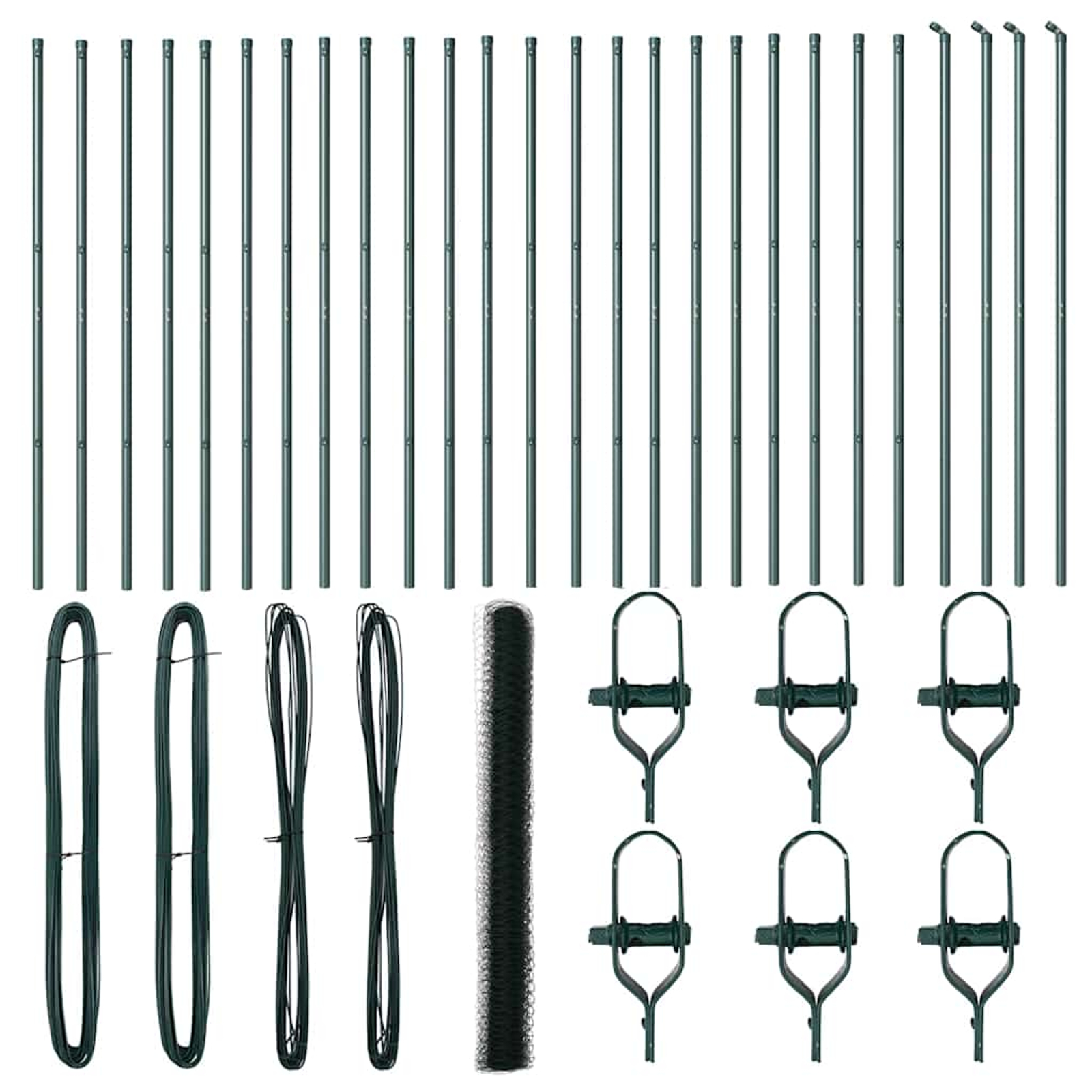 vidaXL Ogrodje s stebri Zelena 1.5 x 50 m Jeklo s PVC premazom