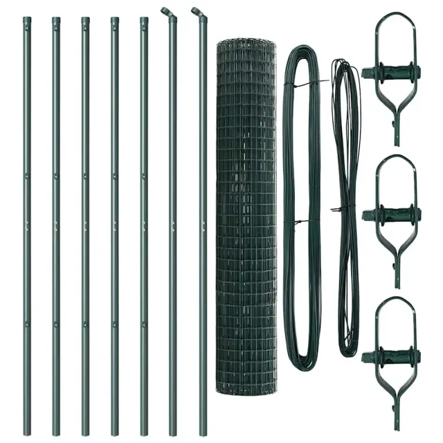 vidaXL Ogrodje s stebri Zelena 1.6 x 10 m Jeklo