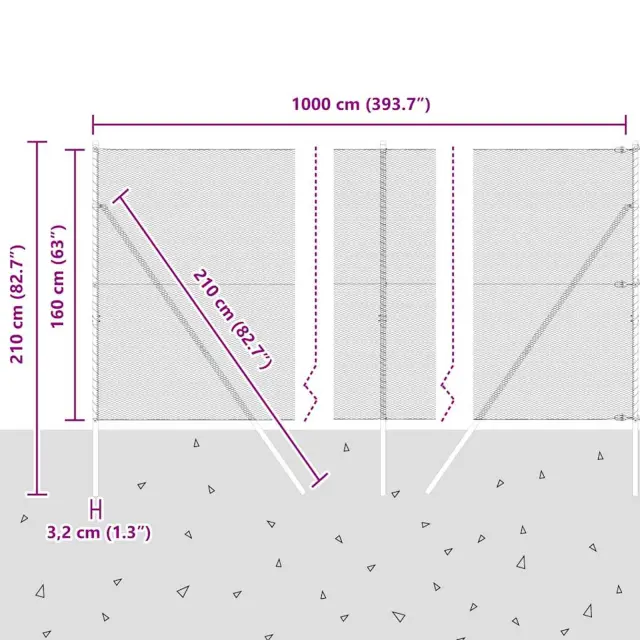 • Splošne dimenzije: 1000 x 3.2 x 160 cm (D x Š x V)