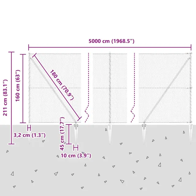 • Splošne dimenzije: 5000 x 3.2 x 160 cm (D x Š x V)