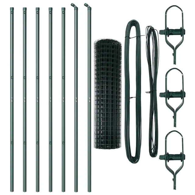 vidaXL Ogrodje s stebri Zelena 1 x 10 m Jeklo