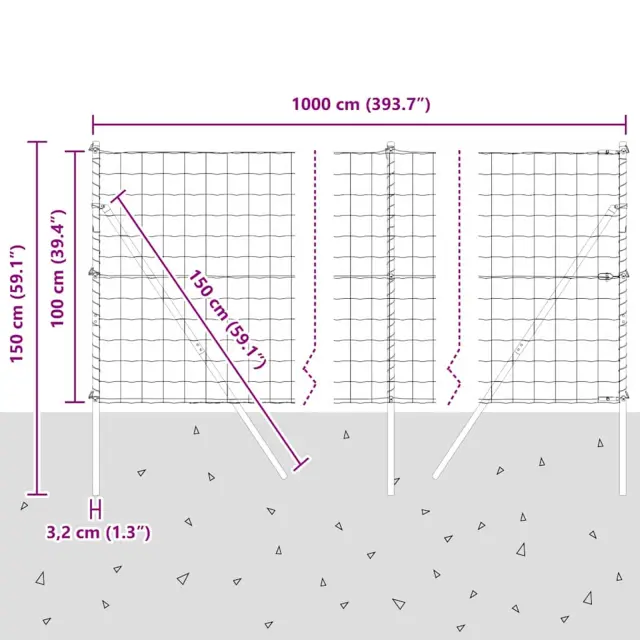 • Splošne dimenzije: 1000 x 3.2 x 100 cm (D x Š x V)