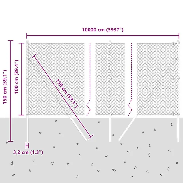• Splošne dimenzije: 10000 x 3.2 x 100 cm (D x Š x V)