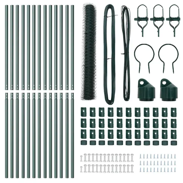 vidaXL Ogrodje s stebri Zelena 1 x 25 m Jeklo s PVC premazom