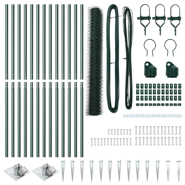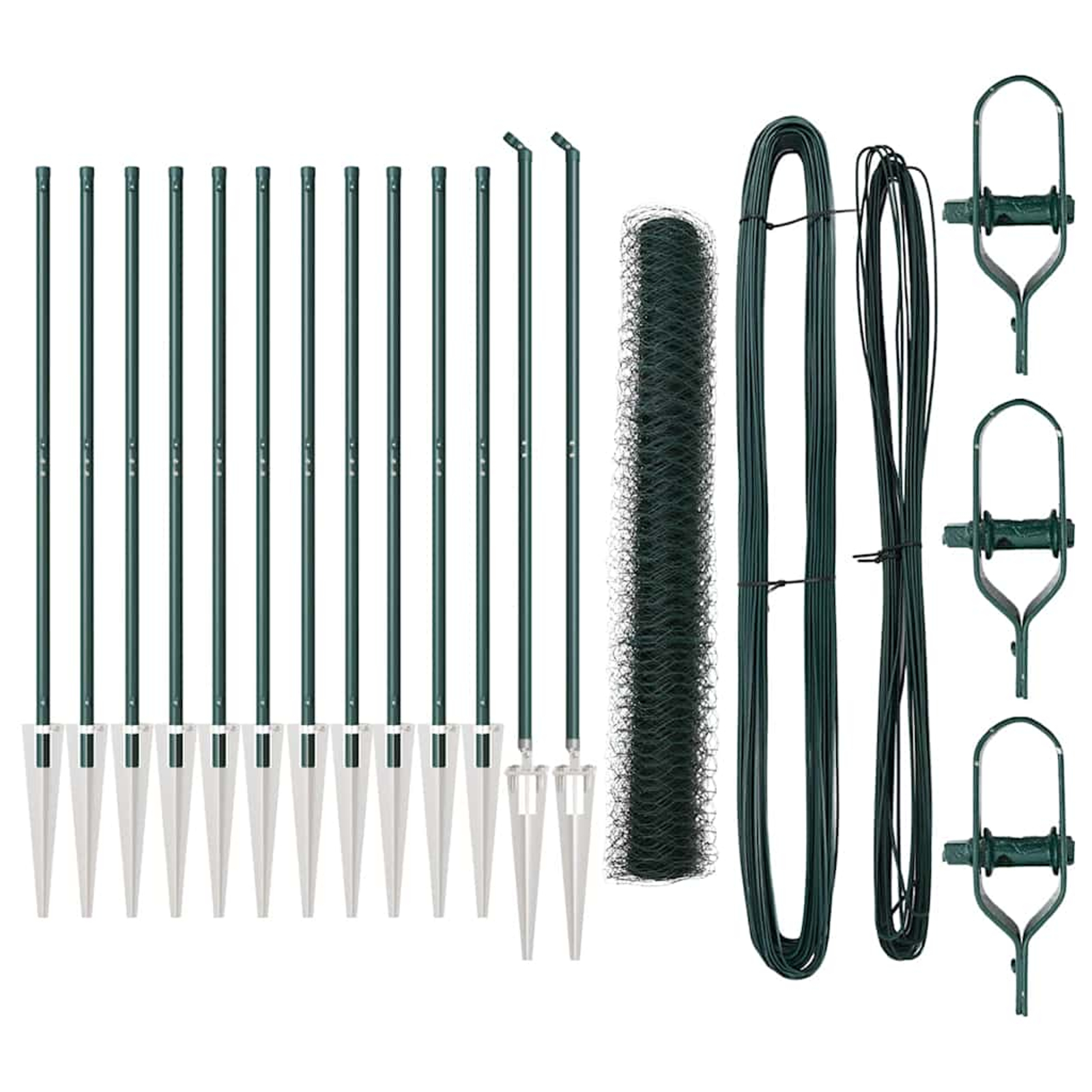 vidaXL Ogrodje s stebri Zelena 1 x 25 m Jeklo s PVC premazom