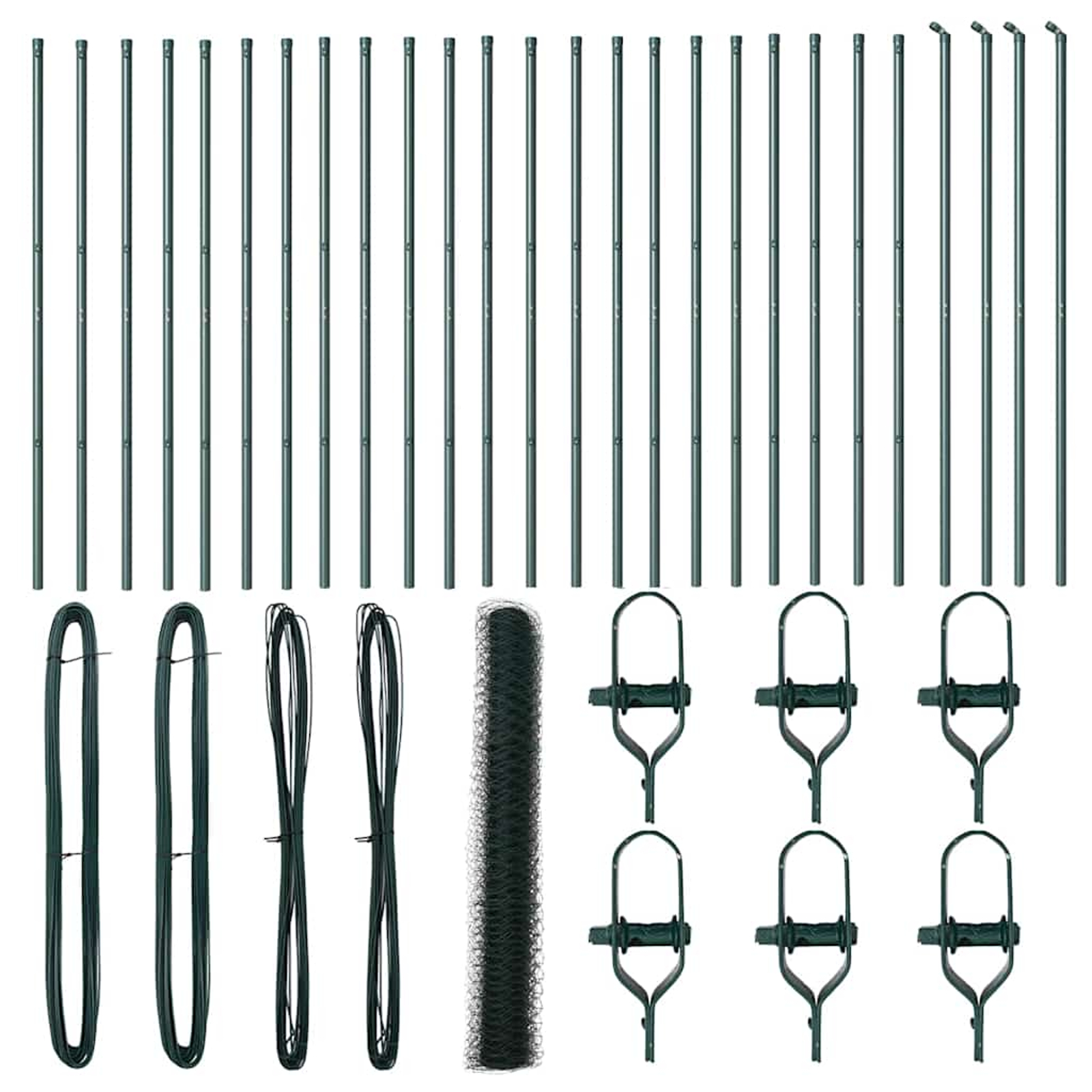 vidaXL Ogrodje s stebri Zelena 1 x 50 m Jeklo s PVC premazom