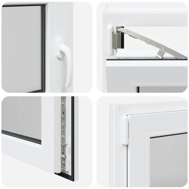 • Visokokakovostni materiali: Okno je izdelano iz PVC in stekla, kar mu daje moderen in čist videz ter dolgo življenjsko dobo. Močan PVC okvir zagotavlja eleganten zaključek, medtem ko steklo omogoča vstop naravne svetlobe, kar osvetli vaš dom in ustvari svež občutek.