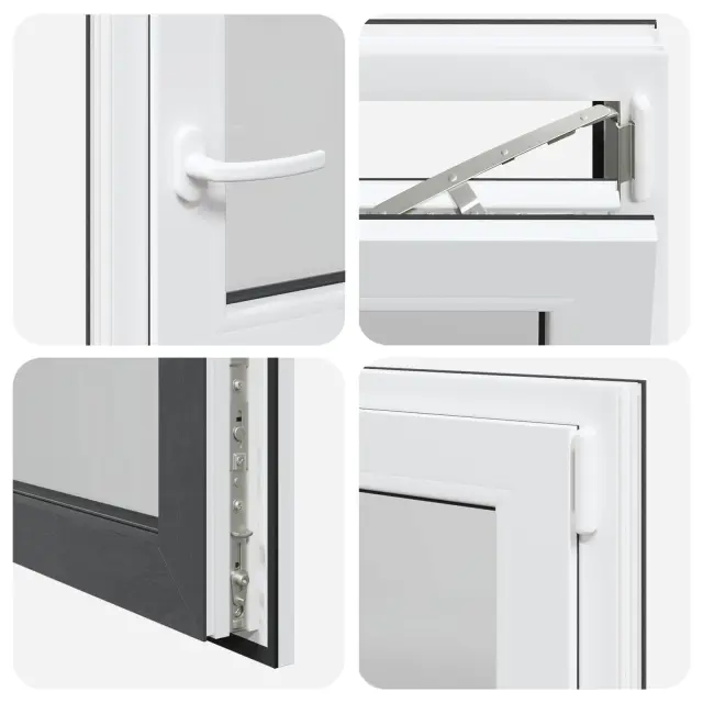• Visokokakovostni materiali: Okno je izdelano iz PVC in stekla, kar mu daje moderen in čist videz ter dolgo življenjsko dobo. Močan PVC okvir zagotavlja eleganten zaključek, medtem ko steklo omogoča vstop naravne svetlobe, kar osvetli vaš dom in ustvari svež občutek.