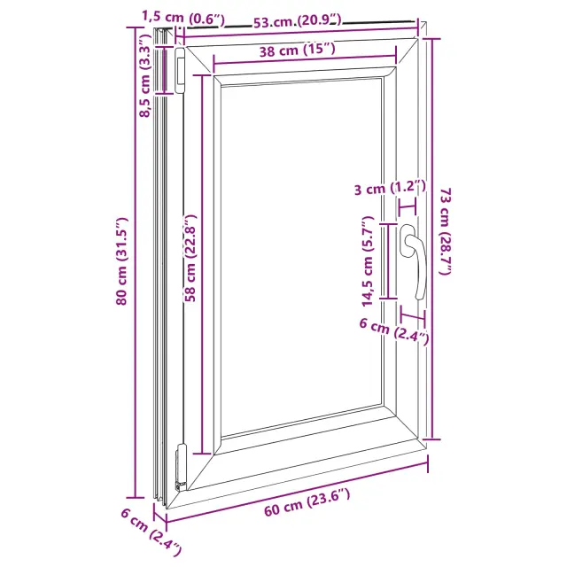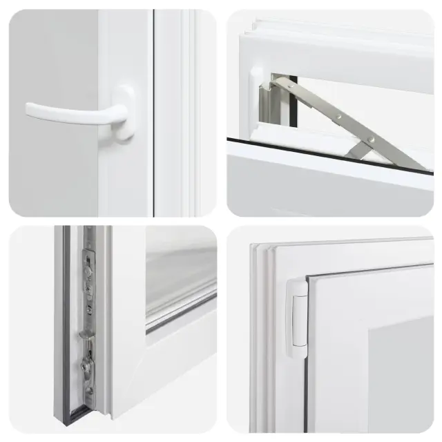 • Visokokakovostni materiali: Okno je izdelano iz PVC in stekla, kar mu daje moderen in čist videz ter dolgo življenjsko dobo. Močan PVC okvir zagotavlja eleganten zaključek, medtem ko steklo omogoča vstop naravne svetlobe, kar osvetli vaš dom in ustvari svež občutek.