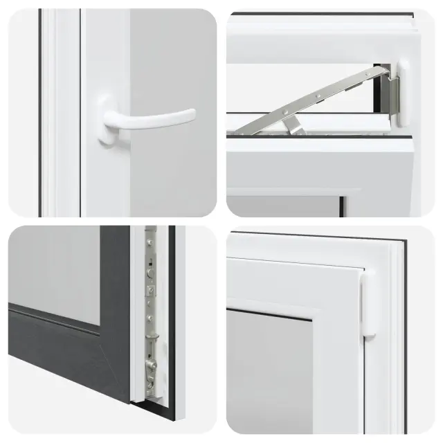 • Visokokakovostni materiali: Okno je izdelano iz PVC in stekla, kar mu daje moderen in čist videz ter dolgo življenjsko dobo. Močan PVC okvir zagotavlja eleganten zaključek, medtem ko steklo omogoča vstop naravne svetlobe, kar osvetli vaš dom in ustvari svež občutek.