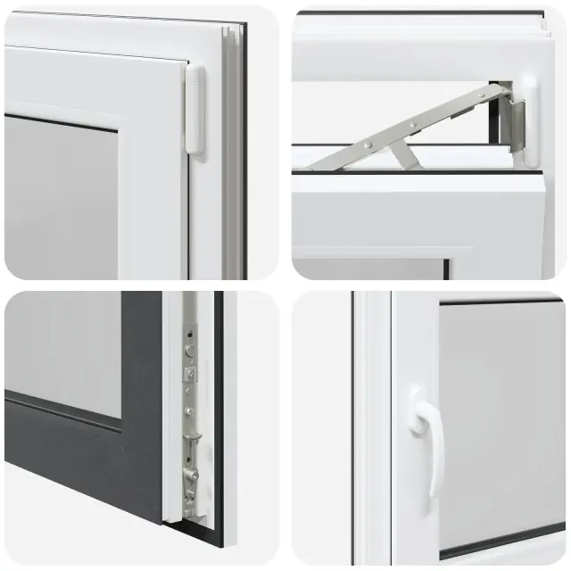 • Visokokakovostni materiali: Okno je izdelano iz PVC in stekla, kar mu daje moderen in čist videz ter dolgo življenjsko dobo. Močan PVC okvir zagotavlja eleganten zaključek, medtem ko steklo omogoča vstop naravne svetlobe, kar osvetli vaš dom in ustvari svež občutek.
