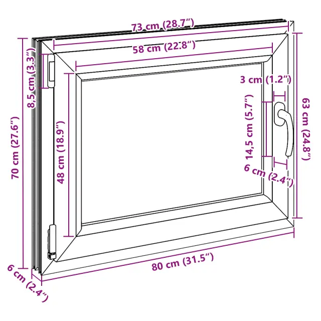 • Visokokakovostni materiali: Okno je izdelano iz PVC in stekla, kar mu daje moderen in čist videz ter dolgo življenjsko dobo. Močan PVC okvir zagotavlja eleganten zaključek, medtem ko steklo omogoča vstop naravne svetlobe, kar osvetli vaš dom in ustvari svež občutek.