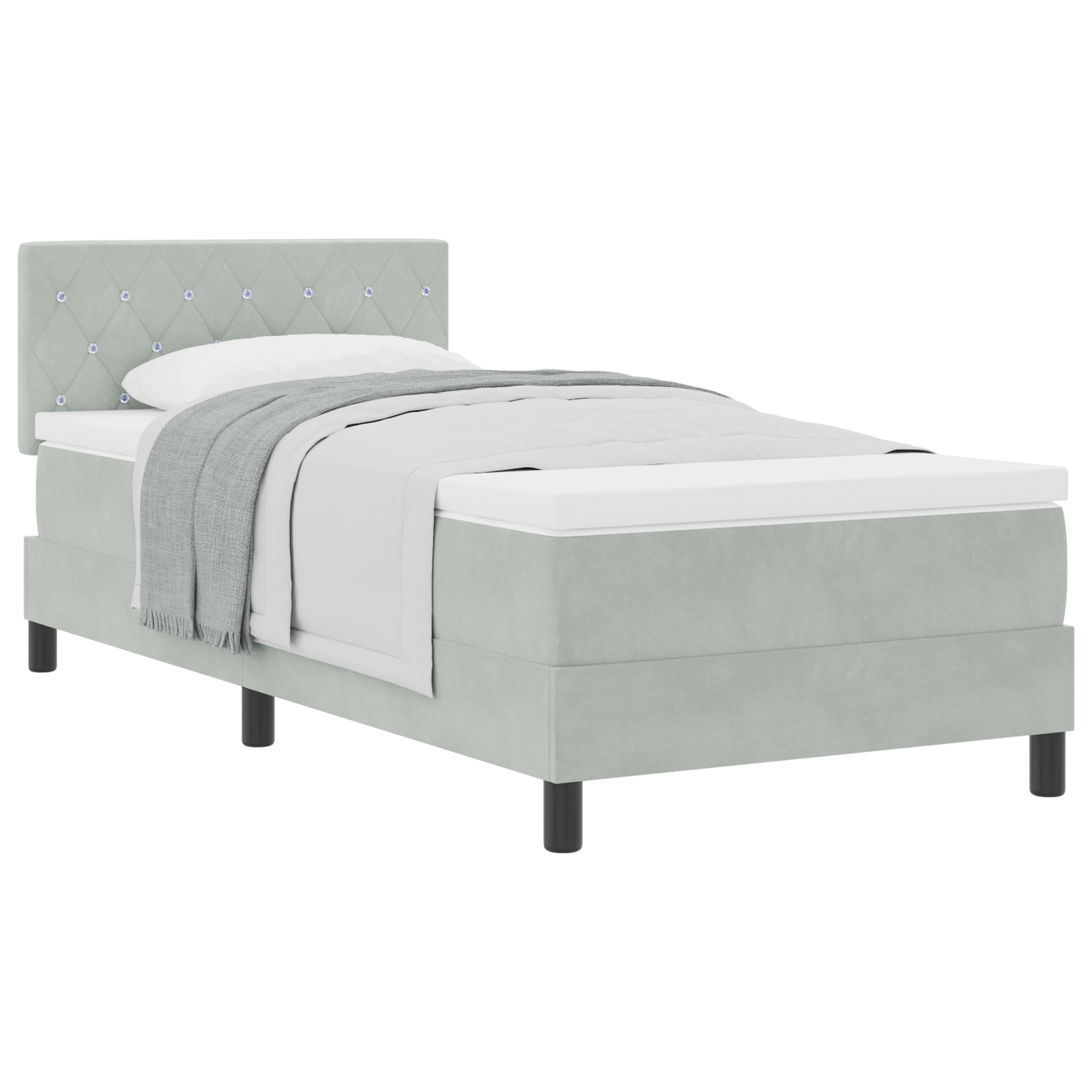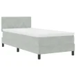 Ta okvir postelje z vzmetnico v svetlo sivem žametu združuje eleganco in praktičnost, kar se odlično prilega v vsako spalnico. Meri 90x187 cm in je idealen za udoben kotiček za enega, kar ponuja stilsko in udobno mesto za počitek.