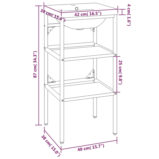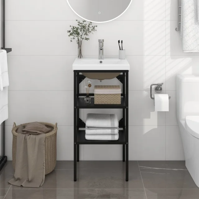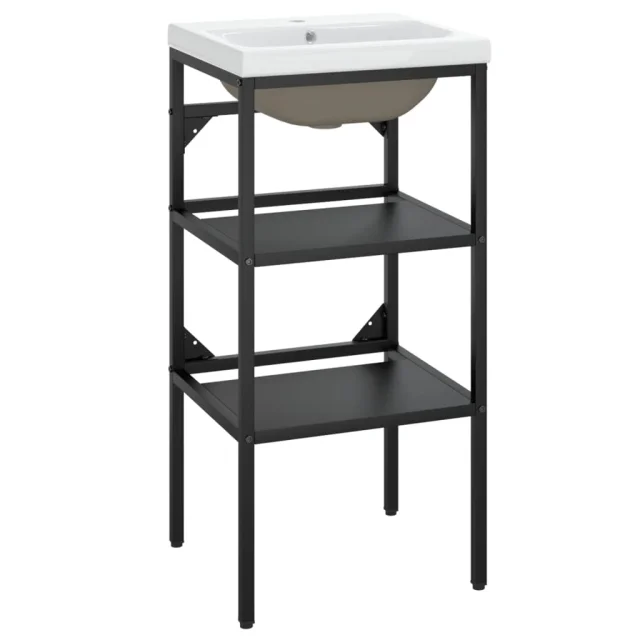 vidaXL Okvir umivalnika z vgradnim umivalnikom črno železo