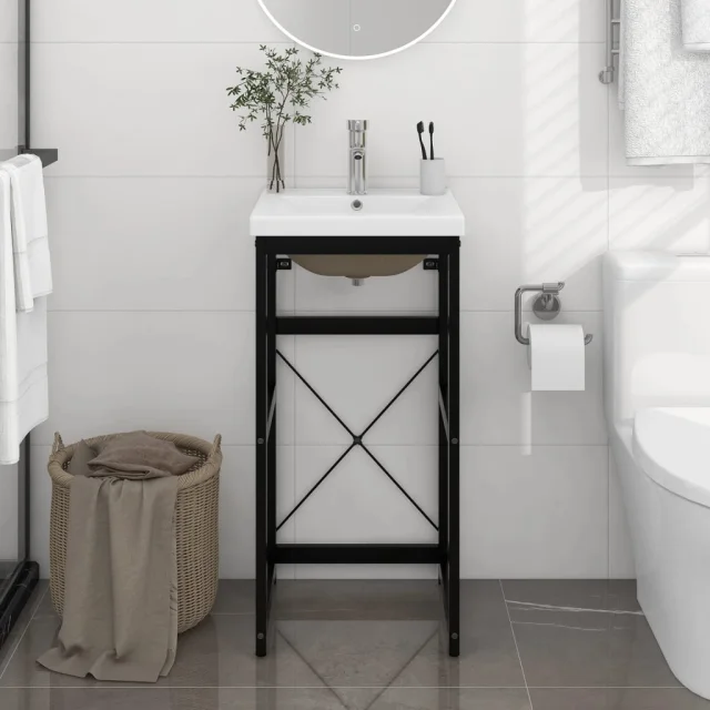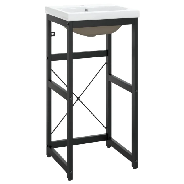 vidaXL Okvir umivalnika z vgradnim umivalnikom črno železo