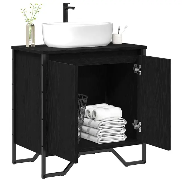 vidaXL Omara pod umivalnik z vrati Črna Orehovina 60 x 35 x 60 cm