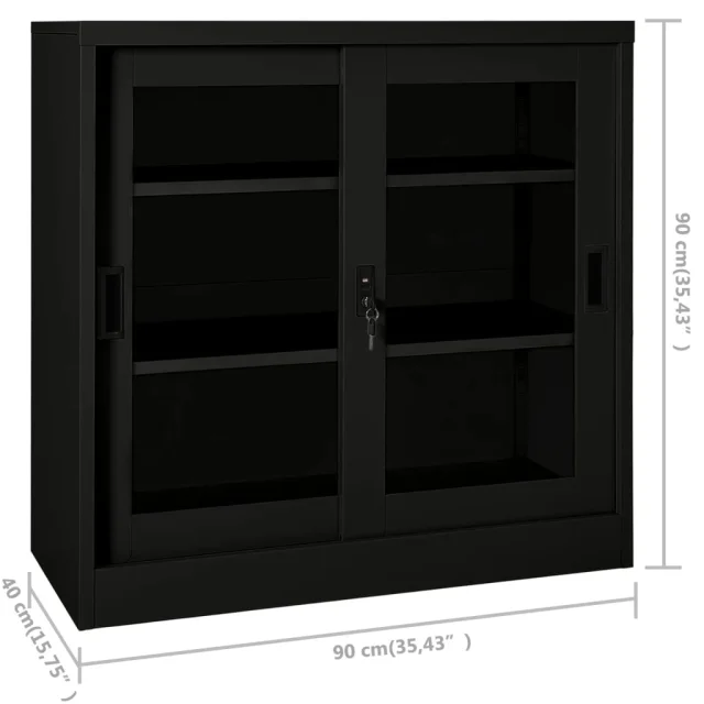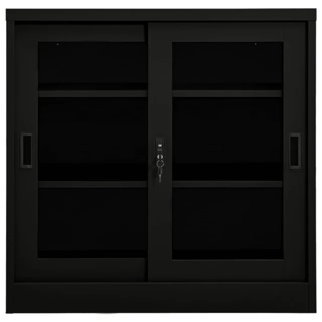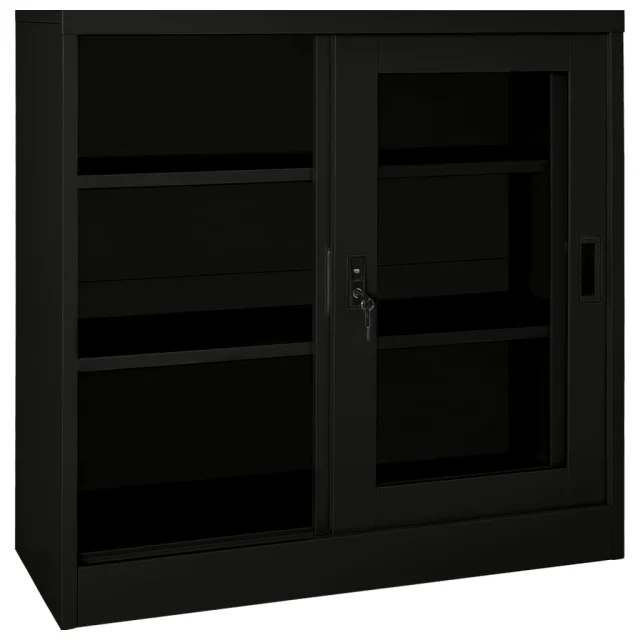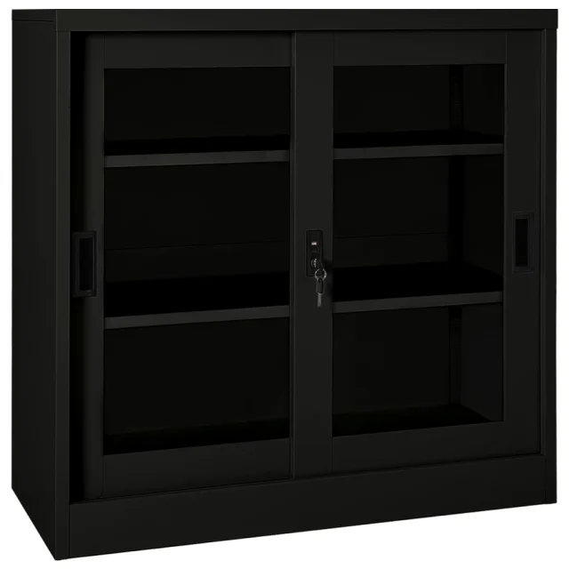 Ta omara je izdelana iz jekla in kaljenega stekla, zato je precej močna in vzdržljiva. Drsna vrata omogočajo preprosto odpiranje in zapiranje. Omarica ima 2 nastavljivi polici, zato je primerna za shranjevanje dokumentov različnih velikosti. Omara za dokumente ima ključavnico za zaščito vaših osebnih dokumentov. Omare z drsnimi vrati so primerne za manjše prostore ali hodnike, v katerih ni mogoče uporabljati omar z drsnimi vrati.