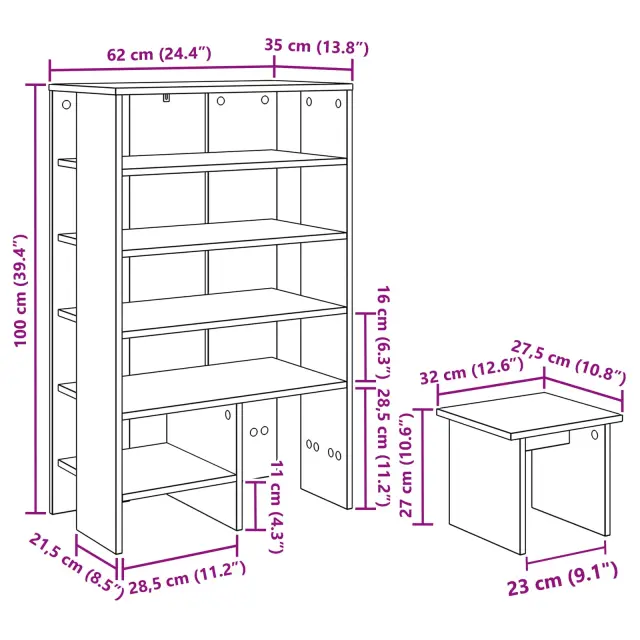 • 1 x omarica za čevlje: 62 x 35 x 100 cm (D׊×V)