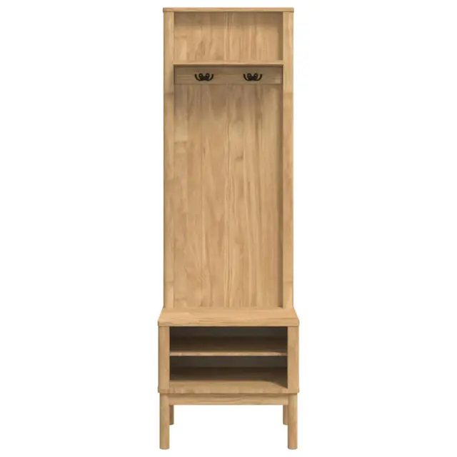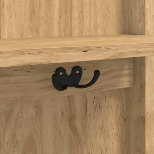 • Trdo borovo les: Omarica je izdelana iz trdega borovega lesa, znanega po svoji lepoti in vzdržljivosti. Ta material dodaja estetski čar in robustno strukturo, kar zagotavlja dolgo življenjsko dobo tudi pri redni uporabi. Njegova solidnost ga naredi zanesljivo izbiro za shranjevanje osebnih stvari, medtem ko sodobna obdelava borovega lesa poudari minimalistični dizajn, idealen za moderne hodnike.