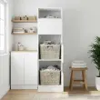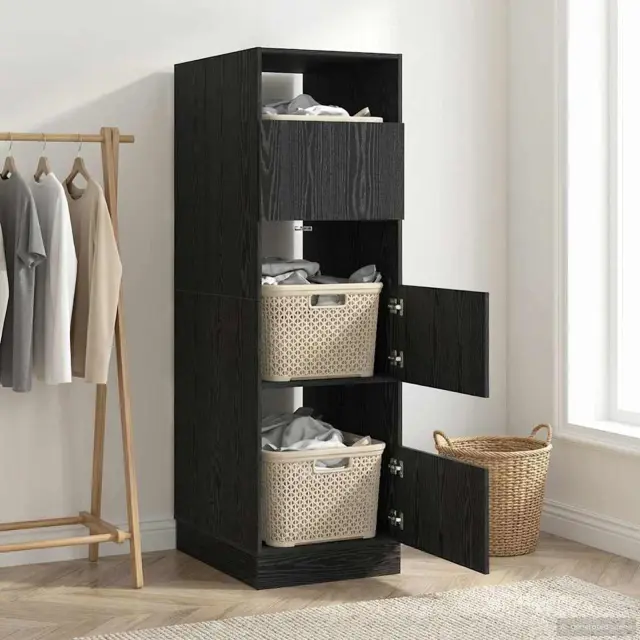Ta moderna omarica za perilo je super mešanica stila in uporabnosti. Načrtovana je tako, da prinaša eleganco v vsak prostor, njena pravokotna oblika pa nudi čisti izgled z gladko površino in sodobnim oblikovanjem. Iz inženirskega lesa je vizualno privlačna in trpežna, kar jo dela idealno izbiro za tiste, ki si želijo organiziran in stiliziran prostor. Dovolj jo lahko napolniš s stvarmi, da tvoje kopalnice izgledajo odlično in so brez nereda.