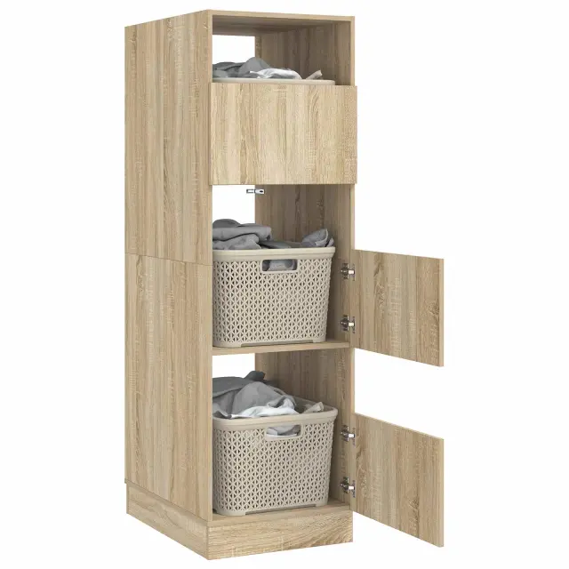 Ta moderna omarica za perilo je super mešanica stila in uporabnosti. Načrtovana je tako, da prinaša eleganco v vsak prostor, njena pravokotna oblika pa nudi čisti izgled z gladko površino in sodobnim oblikovanjem. Iz inženirskega lesa je vizualno privlačna in trpežna, kar jo dela idealno izbiro za tiste, ki si želijo organiziran in stiliziran prostor. Dovolj jo lahko napolniš s stvarmi, da tvoje kopalnice izgledajo odlično in so brez nereda.