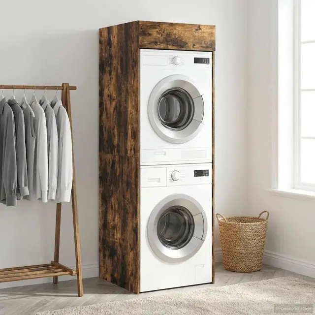 Ta moderna omara za pralne stroje ponuja ogromno prostora za shranjevanje in estetski videz za vašo kopalnico. Čiste linije in preprost dizajn prinašajo kanček modernosti in povezujejo stil z uporabnostjo. Odlično za organizacijo vseh vaših pralnih stvari, omara popestri videz vsake sodobne kopalnice.