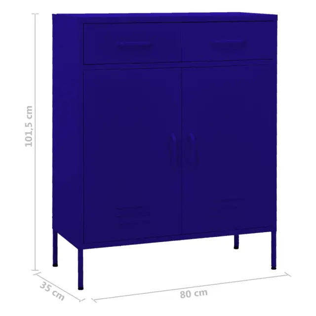 Ta jeklena omara bo ohranila vašo hišo čisto in lepo organizirano! Ta omara za shranjevanje je izdelana iz jekla, zato je močna in stabilna. Police ponujajo dovolj prostora za vaše DVD-je, večpredstavnostne naprave, knjige in druge majhne potrebščine, da bodo organizirane in na dosegu roke. Predali s 3-delnimi krogličnimi vodili zagotavljajo gladko odpiranje in zapiranje, tudi pri povečani obremenitvi. Mogoče jih je popolnoma odpreti. Omara je preprosta za čiščenje z vlažno krpo.Barva: Mornarsko modraMaterial: JekloDimenzije: 80 x 35 x 101,5 cm (Š x G x V)2 vrata2 predala s 3 deli krogličnih tečajevPredale se lahko popolnoma odpreZ 1 nastavljivo policoZ izravnalnimi nogami na dnuNosilnost posamezne police: 30 kgNosilnost na predal: 20 kgSkupna nosilnost: 100 kgPotrebno sestavljanje: DaOPOZORILO: Da se prepreči prevračanje, je treba ta izdelek uporabiti s priloženo napravo za pritrditev na steno 336154