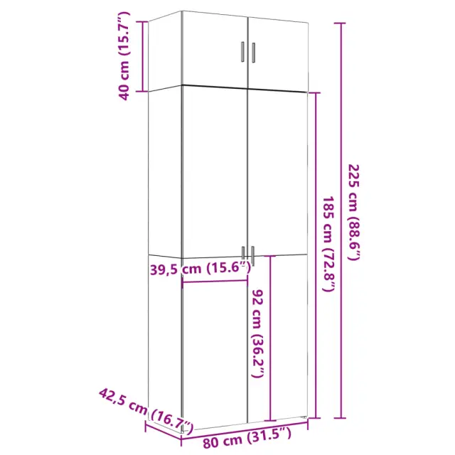 Ta omara za shranjevanje ima dve omari različnih velikosti, ki nudita dodaten prostor za shranjevanje v vašem domu. Stabilen in trpežen material: Inženirski les je trpežen in stabilen material z gladko površino, ki je odporen na vlago, krivljenje in cepljenje, zato je zanesljiva izbira za različne projekte.Veliko prostora za shranjevanje: Ta omarica za shranjevanje je zasnovana z več predali, ki zagotavljajo dovolj prostora za shranjevanje knjig, zbirateljskih predmetov, okraskov ali drugih predmetov, ki jih morate shraniti.Prostorsko varčno: Ta visoka enota za shranjevanje učinkovito izkorišča navpični prostor za povečanje zmogljivosti shranjevanja, zato je idealen kos pohištva za majhne ali omejene prostore.Široka uporaba: Ta vsestranska omara za shranjevanje je funkcionalen dodatek za več prostorov, vključno s kopalnico, dnevno sobo, spalnico, kuhinjo, pralnico, pisarno, kabinetom in garažo. Opozorilo:Za preprečitev prevračanja je treba ta izdelek uporabiti s priloženo napravo za pritrditev na steno. Dobro je vedeti:Vijaki in čepi za notranjost stene niso priloženi. Svetujemo vam, da poiščete in uporabite vijake in zatiče, ki so primerni za vaše stene. Če niste prepričani, se lahko posvetujete s strokovnjakom. Preberite in upoštevajte vse korake v navodilih.Barva: Sonoma hrastMaterial: Inženirski lesCelotne dimenzije: 80 x 42,5 x 225 cm (Š x G x V)Dimenzije majhne omare: 80 x 42,5 x 40 cm (Š x G x V)Dimenzije velike omare: 80 x 42,5 x 185 cm (Š x G x V)Število prostorov: 6Potrebno sestavljanje: Da 3281352