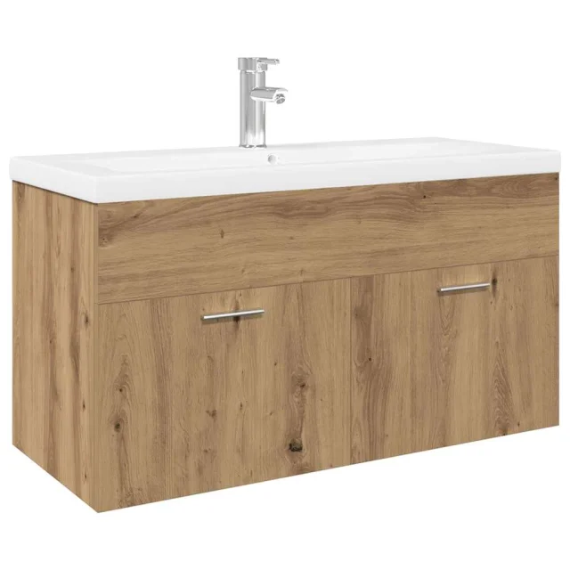 vidaXL omara za umivalnik z vgrajenim umivalnikom Artisan Oak