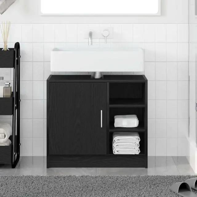 vidaXL Omara za umivalnik z vrati Črna Orehovina 63 x 29 x 55 cm