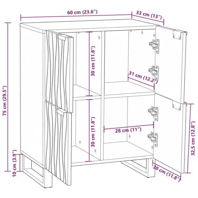 • Notranja uporaba: Zasnovana za notranje prostore, se ta stranska omarica najbolje prilega dnevnim sobam ali jedilnicam. Dobro se ujema z različnimi slogi in prinaša konsistenten občutek v vaše prostore. Idealna je za shranjevanje posteljnine ali jedilnega pribora.