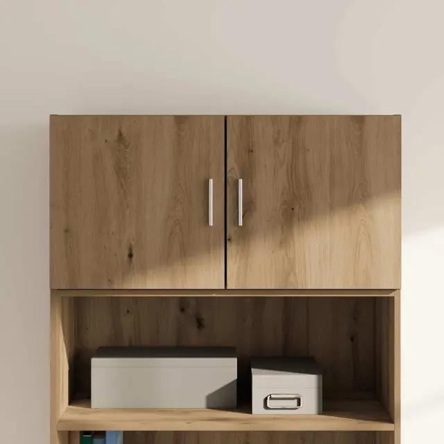 Ta stenska omara za shranjevanje je idealna za stylish nadgradnjo tvojega bivalnega prostora in ohranja vse organizirano. Ne glede na to, ali gre za jedilnico ali kateri koli drug kotiček v hiši, ki potrebuje malo shranjevanja, ta omara ponuja minimalističen videz s čistimi linijami in urejeno površino. Škatlasta oblika olajša namestitev na steno, kar prihrani talni prostor ter ohranja vse lepo urejeno. Njena rustikalna lesena obdelava se enostavno ujema z različnimi slogi, kar prinaša funkcionalnost in stil. Če ti je pomembna praktičnost brez kompromisov glede stila, je ta omara ravno to, kar potrebuješ za shranjevanje svojih najljubših predmetov, drobnarij ali vsakodnevnih potrebščin.