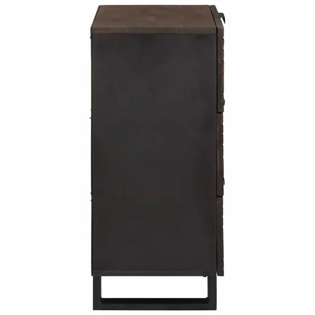Ta rustikalna stranska omarica res izstopa in je super za dodajanje več shranjevanja v vsako dnevno sobo. Ima čudovit teksturiran vzorec valovitih črt na trdem mangovem lesu, kar ji omogoča, da se odlično ujema s toplimi, rustikalnimi dekorji. Elegantne črne železne noge ji dodajajo sodoben pridih, kar pomeni, da se dobro podaja v različne bivalne prostore. Uporabiš jo lahko tudi v jedilnicah, kjer povezuje stil s pravo uporabnostjo.