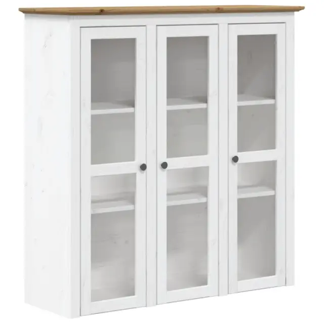 vidaXL Omarica s steklenimi vrati BODO bela in rjava trdna borovina