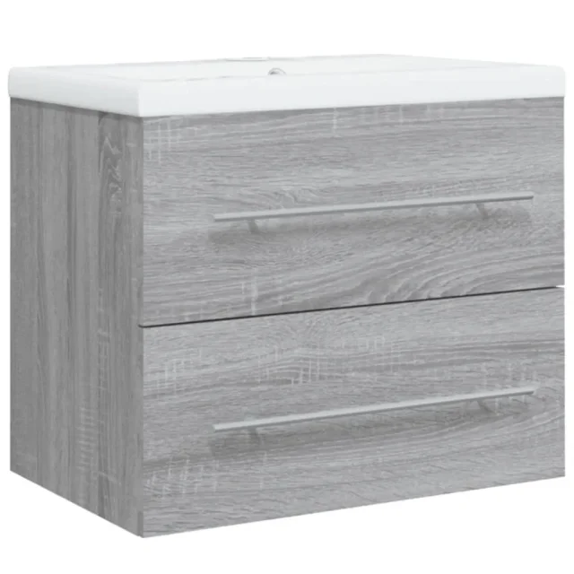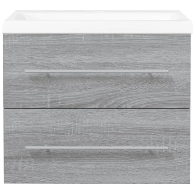 vidaXL Omarica z vgradnim umivalnikom siva sonoma inženirski les
