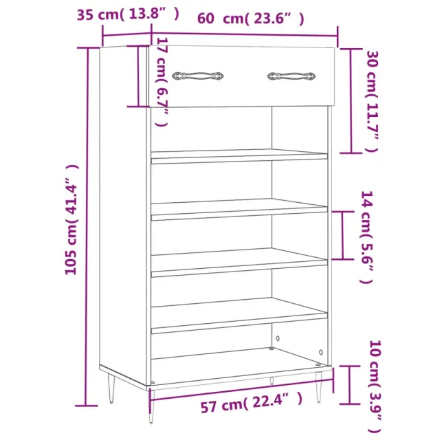 vidaXL Omarica za čevlje visok sijaj bela 60x35x105 cm inženirski les
