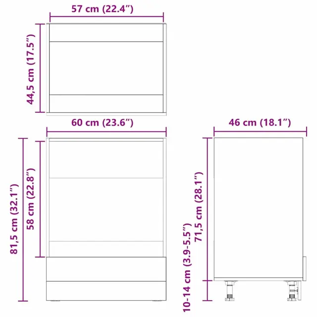 • Splošne dimenzije: 60 x 46 x 81.5 cm (D x Š x V)