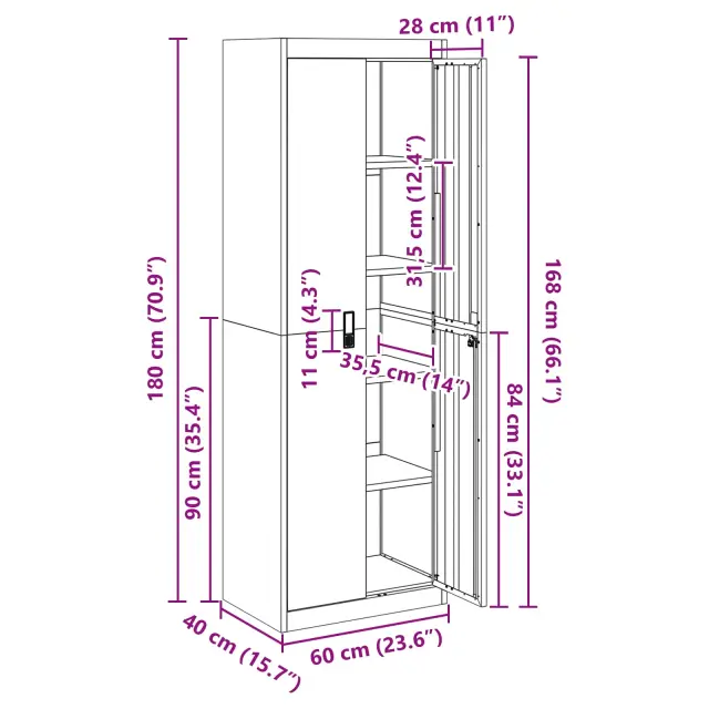• Splošne dimenzije: 60 x 40 x 180 cm (D x Š x V)