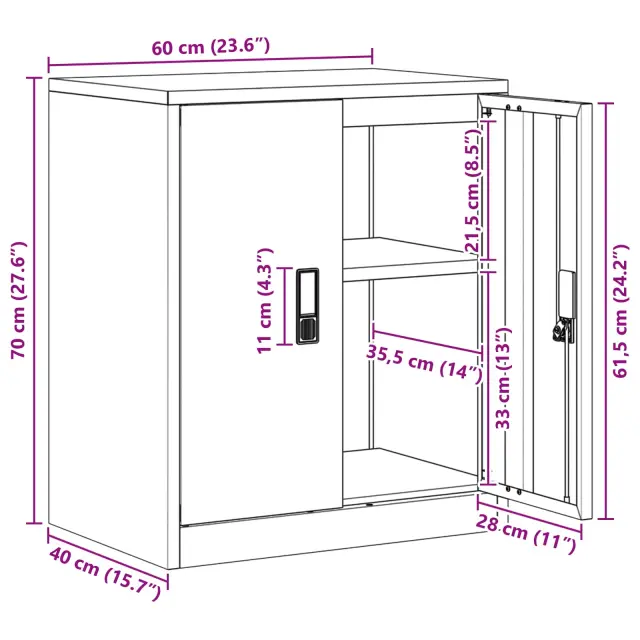 • Učinkovit shranjevalni dizajn Zasnovana je za optimalno izkoriščen prostor, omara pa sprejme raznolike pisarniške potrebščine. Od datotek do pisarniškega materiala, pametna zasnova ponuja obilico prostora, kar je nepogrešljivo za organizacijo v poklicnih nastavitvah.