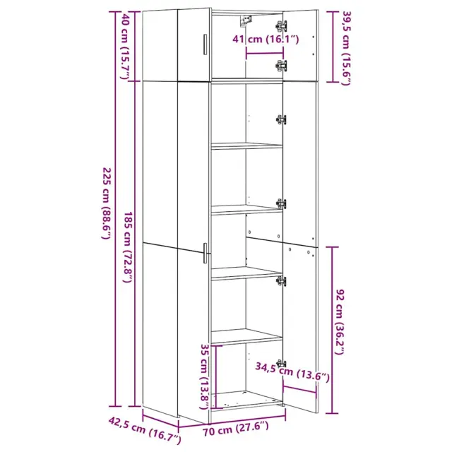 • Splošne dimenzije: 70 x 42.5 x 225 cm (D x Š x V)